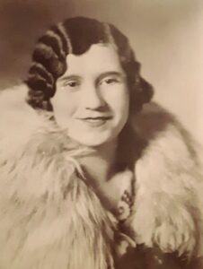 I have a photograph of her taken when she was young, all 1920s stylish. Her dark hair is crimped in bobby pin waves, and she wears a big furry-collared coat. Her eyes look dreamy and a small smile plays on her lips.