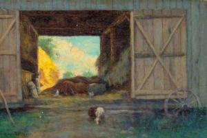 Entering the barn, and immediately to the left, was what we referred to as the “feed-room.” This room had a raised wooden floor two or three steps above the dirt floor. A couple of wooden barrels in the room were filled with mixed grain and feed for the livestock. At the back left corner of the feed room was the landing for the stairs to the barn loft. To this day, I can remember the scent of this room; it was a good smell – like the aroma of molasses and grain, from the feed in the barrels.