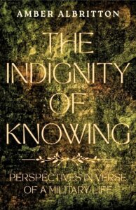Amber Albritton’s debut collection of poetry, The Indignity of Knowing: Perspectives in Verse of a Military Life, fulfills Robert Frost’s requirement that a poem should grip the reader by the throat, refusing to let go. Albritton’s poems take no prisoners. They’re raw, sensate, fierce—unapologetically so. She ferrets out the shadowy interstices lurking in marriage between elite warriors and wives expected to observe a code as unyielding as the one espoused by their fraternity of husbands.