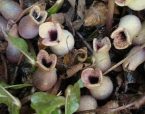 Wild ginger’s root reportedly has culinary and medicinal value. Both Native Americans and settlers used it as a spice. Back in the day, settlers also cooked the root in sugar water to make candy or syrup. Wild ginger has been used to quell stomach issues and fever. Settlers used it as one of several ingredients for toothpaste. The Meskwaki used liquid from the steeped root for earaches.3)Strauch, Betsy. 2018. “Mother Earth Living.” Herb to Know: Wild Ginger. Accessed May 2021. Native Americans also used wild ginger “as a mild sedative”4)Garrett, J.T. 2003. The Cherokee Herbal: Native Plant Medicine from the Four Directions. Rochester: Bear & Company. to relax the heart and nerves. Women once “drank a strong concoction”5)Lust, John. 1974. The Herb Book. New York : Bantam Books. of the root to bring on menstruation.6)Strauch, Betsy. 2018. “Mother Earth Living.” Herb to Know: Wild Ginger. Accessed May 2021. Today, scientists oppose consuming the plant because it “may contain poisonous compounds” (some sources say carcinogenic).7)Stritch, Larry. n.d. “U.S. Forest Service.” Plant of the Week: Wild Ginger. Accessed May 2021. The plant does have antibiotic and antifungal properties and has treated wounds when used as a poultice.