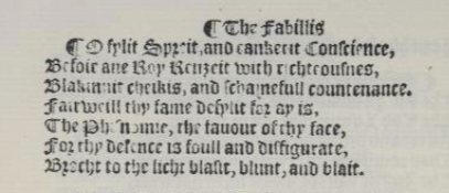 The word first appeared possibly in the 14th century. The earliest printing may have occurred in the 1500s in The Morall Fabillis of Esope the Phrygian (aka Aesop’s Fables: Trial of the Fox) by Robert Henryson.