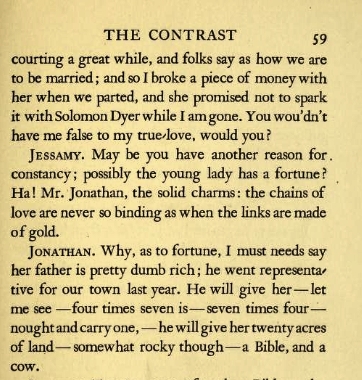 - Wilbur, Royal Tyler and James Benjamin. 1920. The Contrast: A Comedy in Five Acts. Boston: Houghton Mifflin.