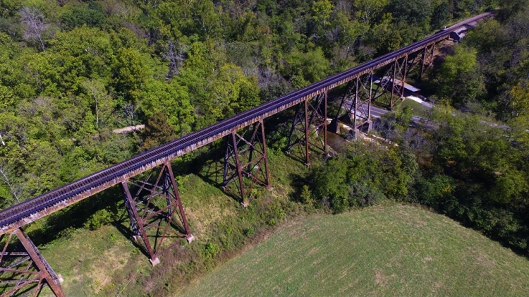 - A walking trail is underneath the trestle.