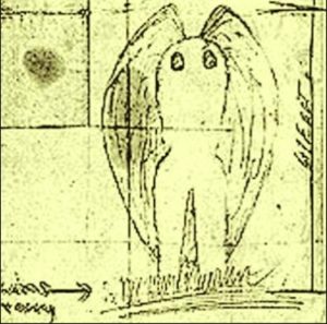 The Mothman drawn by witness in 1966 – Otherside podcast - Behavior and Characteristics: Mothman has an unbelievably fast flight speed. One of the witnesses said it could have been “as much as 100 miles per hour.” The creature cannot move well along the ground and is reportedly quite clumsy.