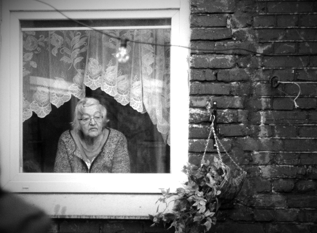 A cigarette dangling from her lips.