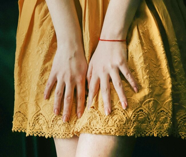 Her bare feet shoved into slip on shoes