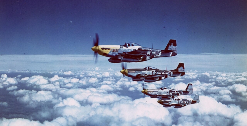 | ↑1 | After World War 2, the military changed the Mustang’s “P” (for pursuit) designation to “F” (for fighter), but it was the same plane. |
