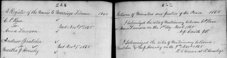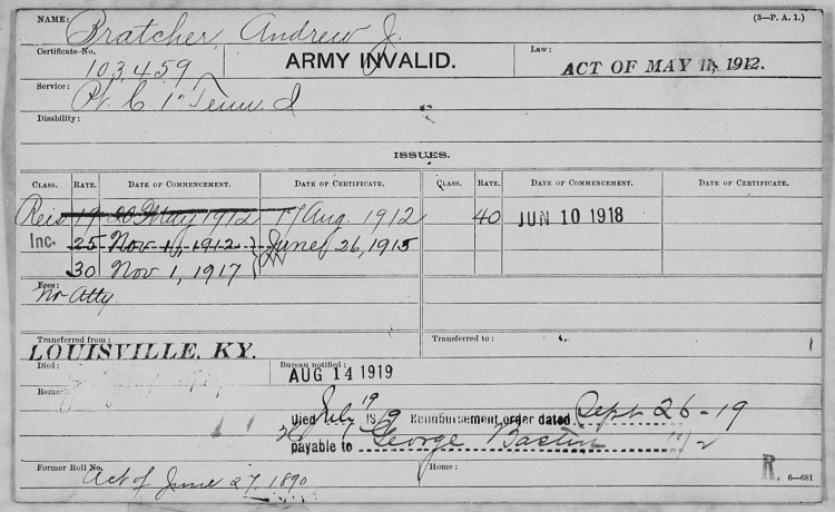 After he married Martha, they left Tennessee for Casey County, Kentucky. Andrew Jackson Bratcher died from tuberculosis on July 19, 1919 in Middleburg, Kentucky.