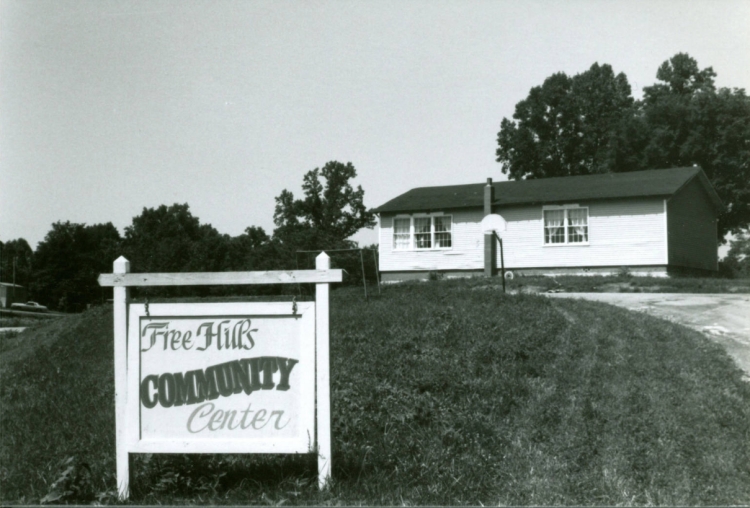 Despite difficulties, the community persisted, buoyed by the Free Hill Church of Christ, the historic heart of the community for two centuries, and the Free Hill Rosenwald School, built in 1929 with the aid of the Julius Rosenwald Fund,1)https://aliciapatterson.org/stories/saving-rosenwald-schools-preserving-african-american-history a grant program directed by Booker T. Washington. For a time it seemed that Free Hills thrived as it was home to approximately 400 people between 1920 and 1950. Free Hill’s Hill Top Café was a popular gathering spot for the locals. Juke joints sprang up where people came to drink beer and play blues music – with names like Bud’s Snack Bar, the Blind Pig, and the Tip-Toe Inn. However, the community’s ascendancy was short-lived.
