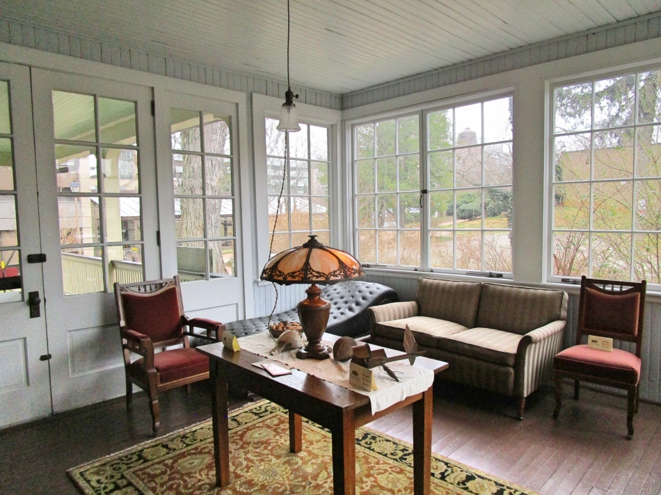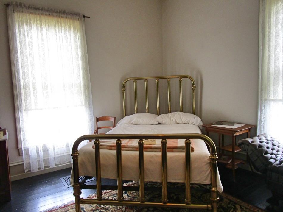Adjacent to the museum/gift shop is Thomas’s mother Julia Wolfe’s boardinghouse, the Old Kentucky Home, where he spent much of his childhood. We took the guided tour and saw what life was like as an early 20th century boarder. Every room uses period furniture, with an early (modernized) conception of electricity and plumbing. The Queen Anne Victorian style house was originally built with 18 rooms in 1883 by banker Erwin Sluder as a wedding gift for his daughter. In 1889, it became a boardinghouse under the ownership of Mrs. Alice Reynolds, who made it complete with electricity and indoor water. Julia Wolfe bought the house in 19061)Thomas Wolfe Memorial. “The House 1880s-1950s.” Thomas Wolfe Memorial. nd. (accessed Feb 2021). “hoping to cash in on Asheville’s tourist trade.”2)Holman, C. Hugh. Thomas Wolfe. Minneapolis: University of Minnesota Press, 1960. p. 15 In 1916, she would add around eleven more rooms. The Thomas Wolfe Memorial began in 1949 and is currently managed by the North Carolina State Historical Site. The house was made an official National Historic Landmark in November 1971 (To find the house on the latter link, scroll down to “North Carolina” and it’s under “Wolfe, Thomas, House.”).