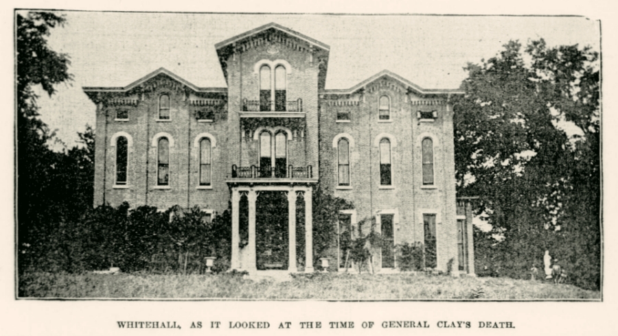 White Hall mansion was first called “Clermont,” and was originally a more modest home. Wealthy surveyor Green Clay built the place in 1798-9951)A Grave Interest. 2011. “White Hall and Cassius Marcellus Clay.” A Grave Interest. Oct 14. after coming to Kentucky with Daniel Boone. Green “grew hemp, raised sheep and owned distilleries, mills, taverns, farms and a ferry.”52)wmadministrator. 2007. “Haunted White Hall.” The Lane Report. Oct 1. Green’s son, noted politician and emancipationist Cassius Marcellus Clay, aka, the “Lion of White Hall,”53)Court, Frank. 2012. “White Hall Filled with Tales of Scandals and Hauntings.” Richmond Register, July 16: web. inherited Clermont. The home became White Hall under Cassius Clay’s ownership.