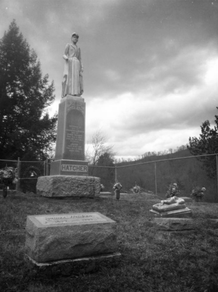 | ↑44 | The Hatcher family eventually installed a fence around the grave and placed the statue atop a thick marble base to stop further damage – from Jessica Forsyth’s “The Story of Octavia Hatcher” on Dave Tabler’s Appalachian History website. |