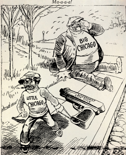 In Johnson City, 1926 was purportedly the worst for “vice conditions.” Newspaper editorials write about “an underground organization [that] was attempting to strangle the town.”14)Bridwell, A. (updated) 2009. “Johnson City as “Little Chicago”: The Clues.” Johnson’s Depot. Jan 10. By 1928, lawlessness was out of control. In a Johnson City Chronicle editorial dated October 28, 1928, the writer says the criminal activity “has caused Johnson City the embarrassment of being called the ‘Little Chicago of the South.’” The reference is the earliest mention that ties Johnson City to “Little Chicago.” Certainly, no comparison can be made between the two “Chicagos” (save the corruption, liquor distribution, or bootlegging). No “gangland shootouts” occurred in Johnson City.15)During prohibition, 800 gang members were murdered. But too many allusions and bits of circumstantial evidence points to alleged mob associations, chiefly with that of Al Capone.