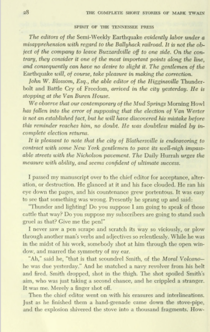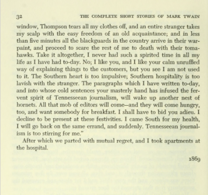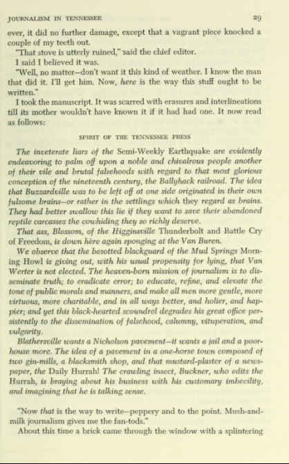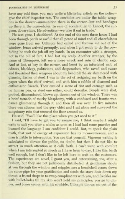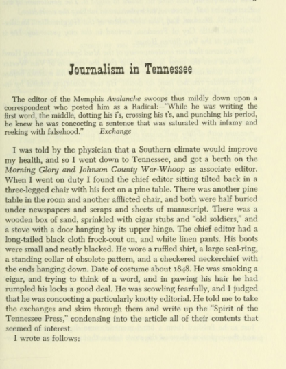 Take some time to read Twain’s short story, “Journalism in Tennessee” below. It’s hilarious. Just click on the pages.