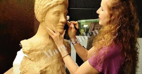 **Featured image of Mary Ruden with her bronze bust of Knoxville, Tennessee, suffragist Lizzie Crozier French