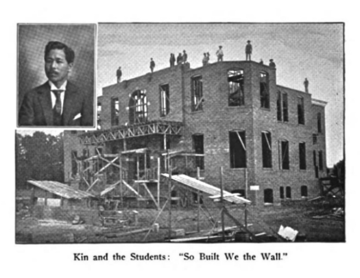 - Kin Takahashi is an MC legend for many reasons. He was a Japanese student who transferred to Maryville in 1888. An energetic leader and athlete, he organized fellow students into launching MC’s first football team in his first year attending. (Three years before University of Tennessee, Knoxville, did so in 1891.) Leading up to his graduation in 1895, he founded a campus YMCA, and persuaded “the college administrators . . . the student body, Maryville town residents, and potential donors” that the association was needed. The building was constructed and funded entirely by students working with local craftspeople. The students made the bricks onsite themselves and named the building Bartlett Hall upon completion. It currently serves as the college’s student union.12)Maryville College “Who Was Kin Takahashi” 13)Maryville College: The Founding Story, 15-16 Sadly, Mr. Takahashi died of an illness just two years after his graduation at thirty-six years old. His legacy of hands-on service to his campus, church, and community is honored today in MC’s long-running Kin Takahashi Week, when alumni come together at MC, and beyond, to perform all kinds of community service.