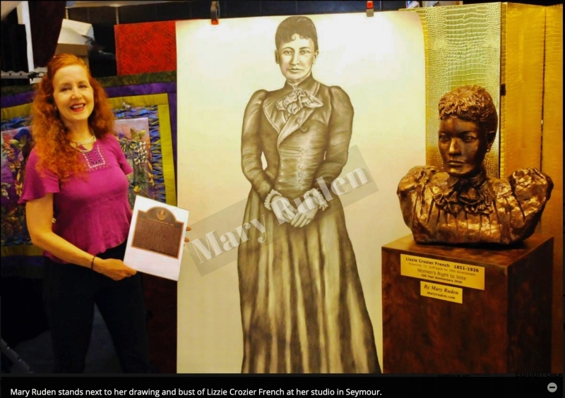 They were drawn from historic photos and required careful study of the clothing at the time. The artist also created a bronze bust of famous Knoxville women’s suffragist, Lizzie Crozier French, that depicts her circa 1869. Lizzie was state chair of the National Woman’s Party. She co-founded educational institutions for women among many other endeavors. She is buried at the historic Old Gray Cemetery where a new bronze marker was placed for her in 2021. The bust was included in the Centennial exhibit in 2020 at the East Tennessee History Center featuring women’s right to vote.