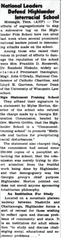 Postscript – If you would like to receive Highlander’s digital newsletter, go to highlandercenter.org and request one.