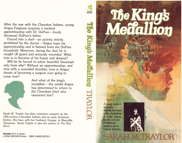 In 1984, Traylor continued Angus’s story in The King’s Medallion, which begins in 1760 shortly after the events in The Red Wind. The medallion refers to those given by King George II to Attakullakulla and six other Cherokee leaders who visited England.