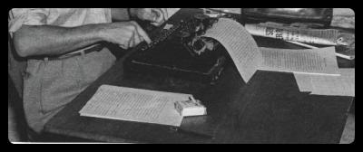 **Page and Slider Photo Source: John T. Whitaker, war correspondent from Chattanooga, Tennessee writing in his Pickett State Park cabin – September 1941