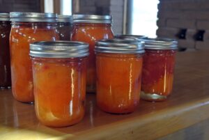 Five jars remain unsealed as Mom begins nodding off in her recliner in the living room within sight of the jars. “Watch them for me,” she tells me drowsily. She is truly worn out from standing on her feet all day canning these 80-some quarts and three pints of tomatoes. “Remember to say it—don’t forget—‘Thank you, Lord,’ each time one seals.”