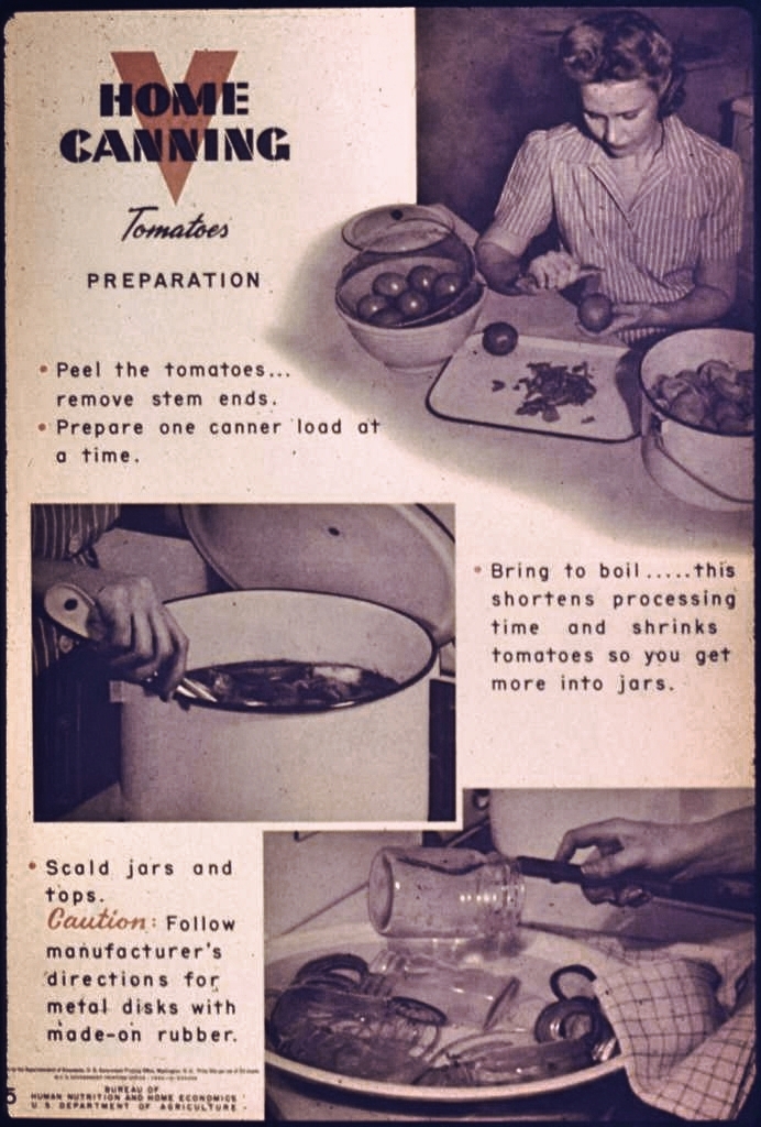 My timer chimes and I turn off the stove, scooting the canner carefully to the other two stove eyes. My husband, imported from the Midwest, corrects me every time I call them stove eyes—he calls them burners—but we’re not cooking on gas and we’re in the South, my South, and I’ve always heard them called eyes and continue to do so. I grab a large-mouthed funnel, place it in a wide-mouthed jar, and dip a big batter bowl with handles in the tomatoes. I walk briskly to the table, careful not to slosh the red, hot liquid on myself and begin pouring, batter bowl to jars, wiping down each rim again, pressing down the lids, and twisting on the rings. Jar to jar, row by row, until all are filled, and the red, seedy mixture has disappeared from the canner.