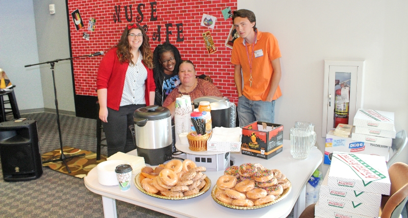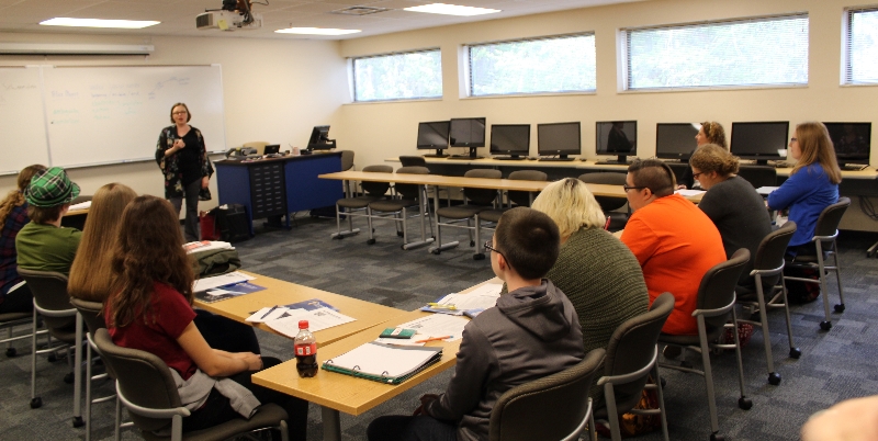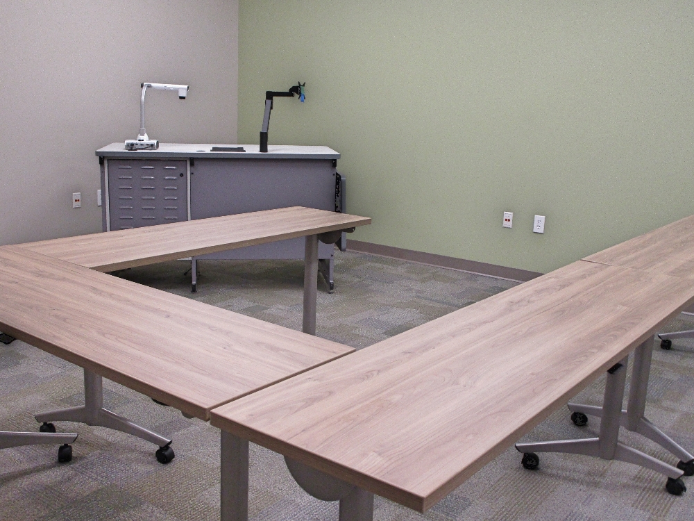 Our tour continued to the side rooms, where Pellissippi students will gather, study, and practice without affecting the library’s quiet. One room is designated a virtual room where students can compile and edit videos or power points, or simply play games to relieve stress. The conference room, enormous and adaptable, had tables, chairs, and a kitchenette. We gathered here to discuss our thoughts about the tour, a little about our Appalachian identities, and what the AHP has to offer.