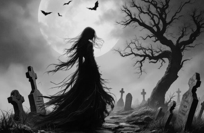 The girl jumps up as if snake-bit, screaming fit to wake every last person buried beneath us. “She is, she is! She tapped my shoulder!”