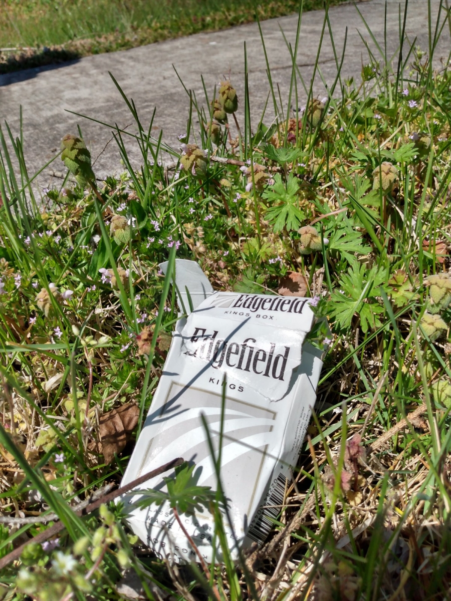 I do quarterly bike lane clean ups, including the surrounding ditches and roadsides, along the River Rd in Asheville, NC for the Blue Ridge Bike Club. Monthly, I pick up litter, count plastic bags and bottles for a survey, and do a water sample for micro plastics at the Pierson Bridge boat launch site on the French Broad River for the environmental advocacy group, MountainTrue. MountainTrue is trying to get Asheville to ban single-use plastic bags. Micro plastics are prevalent in the French Broad River, especially synthetic fibers. Cigarette butts, by count, are the items I’m picking up most frequently in the litter clean ups. While I don’t think all smokers litter, I bet there is a strong correlation between smokers and litterers.