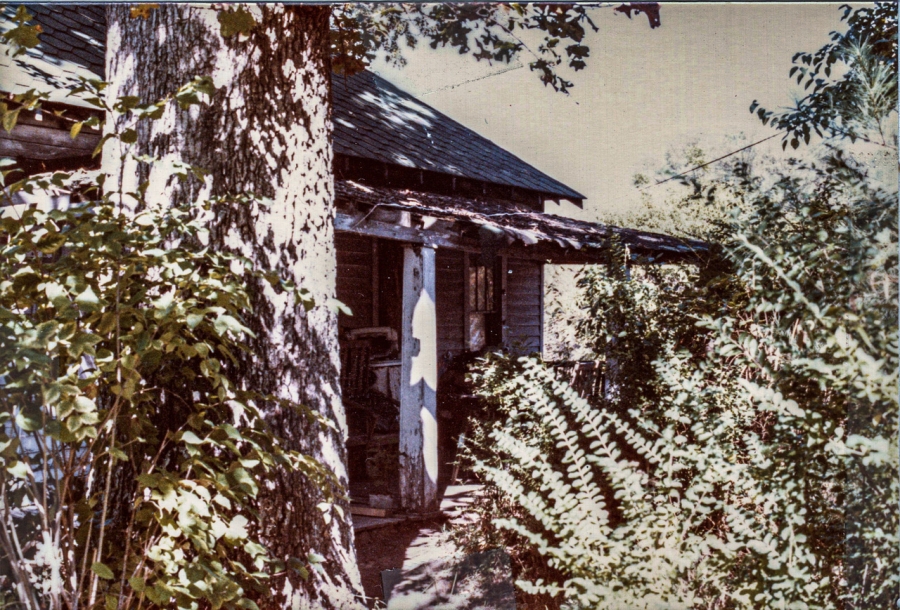 Starting in January of 1978, Jerry and I took the first of many two hour drives up to Mary’s property. Her dilapidated bungalow (see photos 1 – 3 below), or what was left of it, sat not far off the road on a scrubby, overgrown lot dominated by a huge oak tree near the front porch. A portion of the roof and a rotting wall at the left corner of the house were caved in; a gaping hole punctured a rear room on the right side; cardboard and plastic covered some of the shattered windows; junk, including a defunct wringer washing machine, cluttered the sagging front porch.