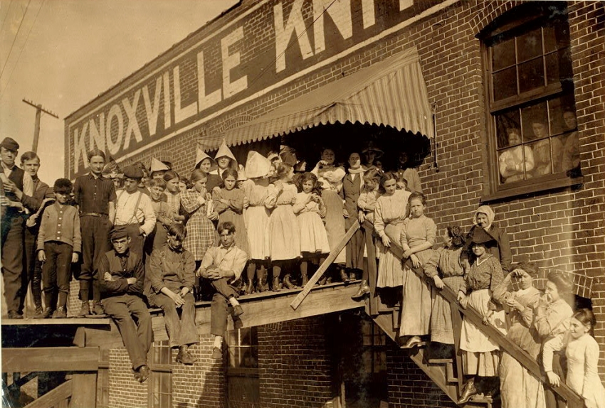 According to the article, cotton production surged in the mills before World War I, and the work was a monotonous ten-to-twelve-hour day where workers “walked, stretched, leaned, and pulled at their machines.”10)Hall, Jacquelyn Dowd, Robert Korstad, and James Leloudis. “Cotton Mill People: Work, Community, and Protest in the Textile South, 1880-1940.” The American Historical Review, 1986: Web., p. 255. Cotton fibers filtered through the air, stuck to every exposed area, and entered the lungs. The machinery was deafening, and the badly ventilated rooms generated a sweltering, smothering heat. One could easily see where the term sweatshop11)Dray, Philip. There is Power in a Union: The Epic Story of Labor in America. New York: Doubleday, 2010. p. 265. originated. Some mill supervisors were too severe with women and children, verbally intimidating them, and, at times, shaking the children. After World War I, the demand for cotton declined, so the textile industry as a whole looked for ways to cut costs. Supervisors pressured workers harder to make sure they didn’t “waste time” by talking, drinking water, or using bathroom facilities. Supervisors constantly monitored with stopwatches, clocking precisely how much time a worker could complete every single task. This strategy caused such a fast-paced system that many workers couldn’t keep pace. Business owners purchased faster machinery that did more work and cut out most laborers. To further agitate the situation, owners hired “college-trained supervisors” who had no knowledge of what work was like on the floor of the mill. Tensions escalated, and, as stated before, the situation led young women to strike in Elizabethton, Tennessee.12)Hall, Jacquelyn Dowd, Robert Korstad, and James Leloudis. “Cotton Mill People: Work, Community, and Protest in the Textile South, 1880-1940.” The American Historical Review, 1986: Web., pgs. 255, 266-270, 296.