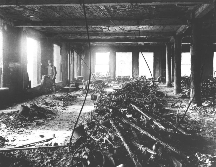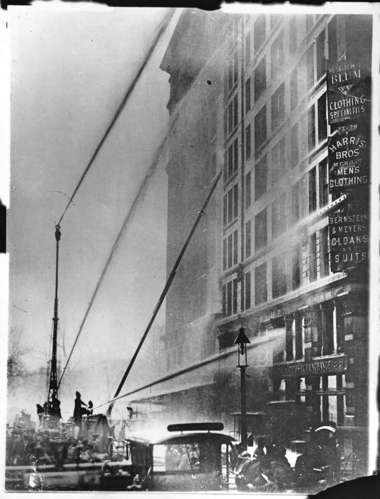 | ↑19 | The 1911 Triangle Shirtwaist Company fire started in a rag bin. The foreman tried to extinguish it but the hose was rotten and the valve was rusted shut. Of the four elevators, only one with a 12 person capacity worked, and made approximately four trips before it broke down. There were two stairwell exits. One was kept locked to prevent stealing. The other door opened inward. The fire spread. The company was housed within the top three floors of the building. A total of six hundred workers were there. All the workers were immigrants who spoke little to no English, almost all young girls and women. One hundred forty six persons died. Of that number, 49 succumbed to burns or smoke inhalation; 36 died jumping down the elevator shaft; 58 died jumping from the building onto the pavement below. |