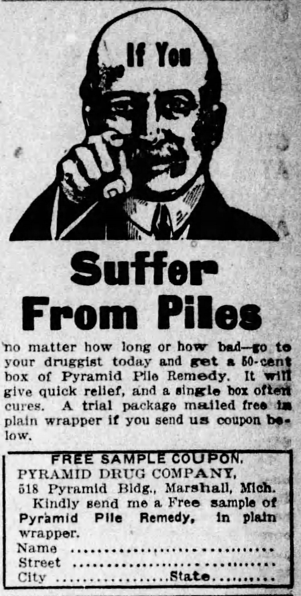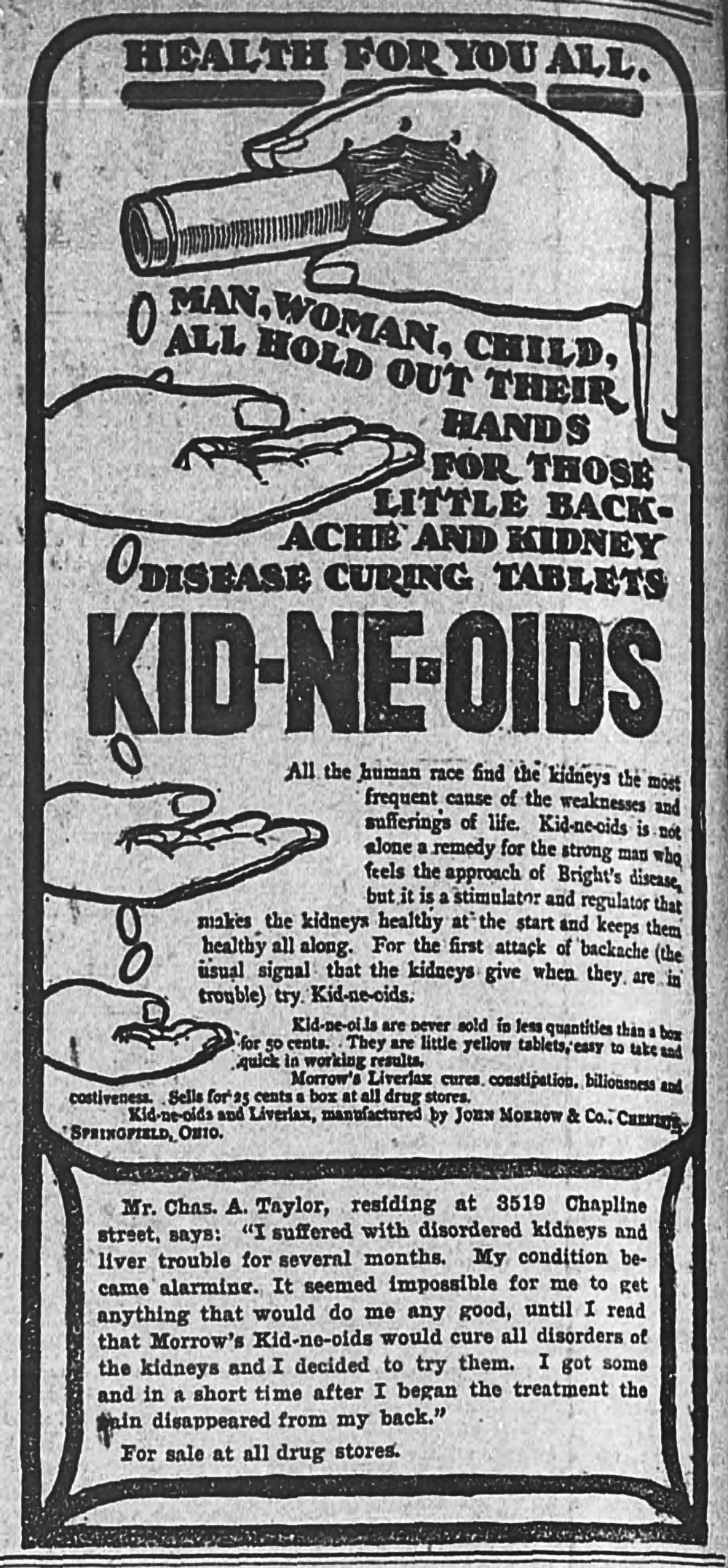 Take a look at some of the hot products of way back when (1875 – 1925). Some of these will undoubtedly cause a cringe or two and a chuckle. Be warned. In today’s world, some of the following may be offensive.